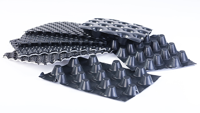 Drainage layer comprising a high-performance Single Cusped HDPE core with a geotextile filter thermally bonded to one side. The product is used for drainage of all underground structures and is highly compression resistant.