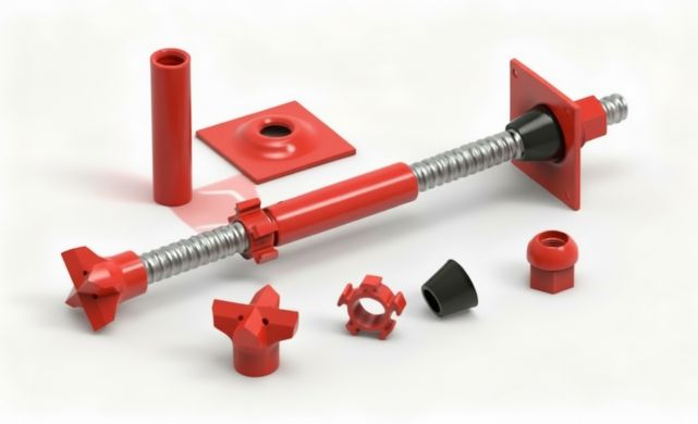 These specialized bolts integrate drilling, grouting, and anchoring into one seamless operation. A hollow steel rod fitted with a sacrificial drill bit drills into the rock or soil, while grout is injected through the hollow core to consolidate the surrounding ground and bond the bolt in place. After grouting, a plate and nut secure the anchorage at the surface